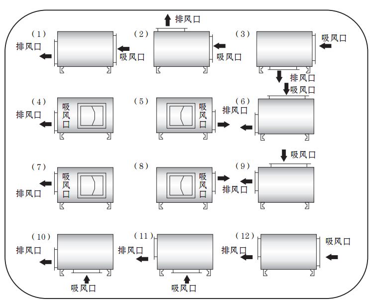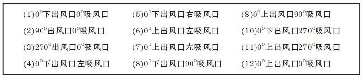 注:訂貨時(shí)還應(yīng)注明風(fēng)機(jī)的進(jìn)出風(fēng)口位置編號(hào),出風(fēng)口位置編號(hào),詳見(jiàn)風(fēng)柜進(jìn)、出風(fēng)口對(duì)照表。