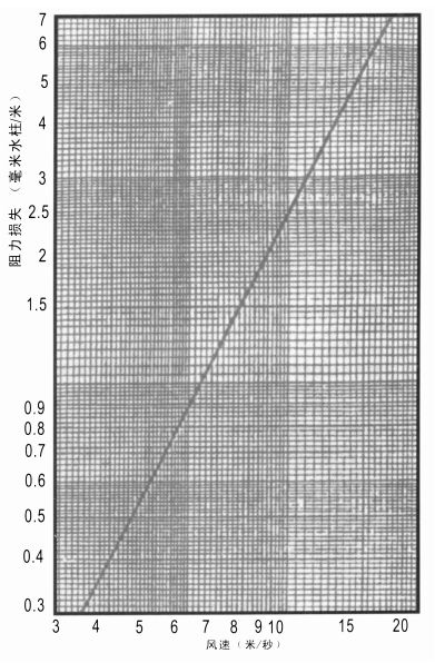 性能:消聲量低頻為10-15dB/米 中頻為15-25dB/米高頻為25-30dB/米,阻力系數(shù)§=0.42阻力損失與風速的關系曲線。