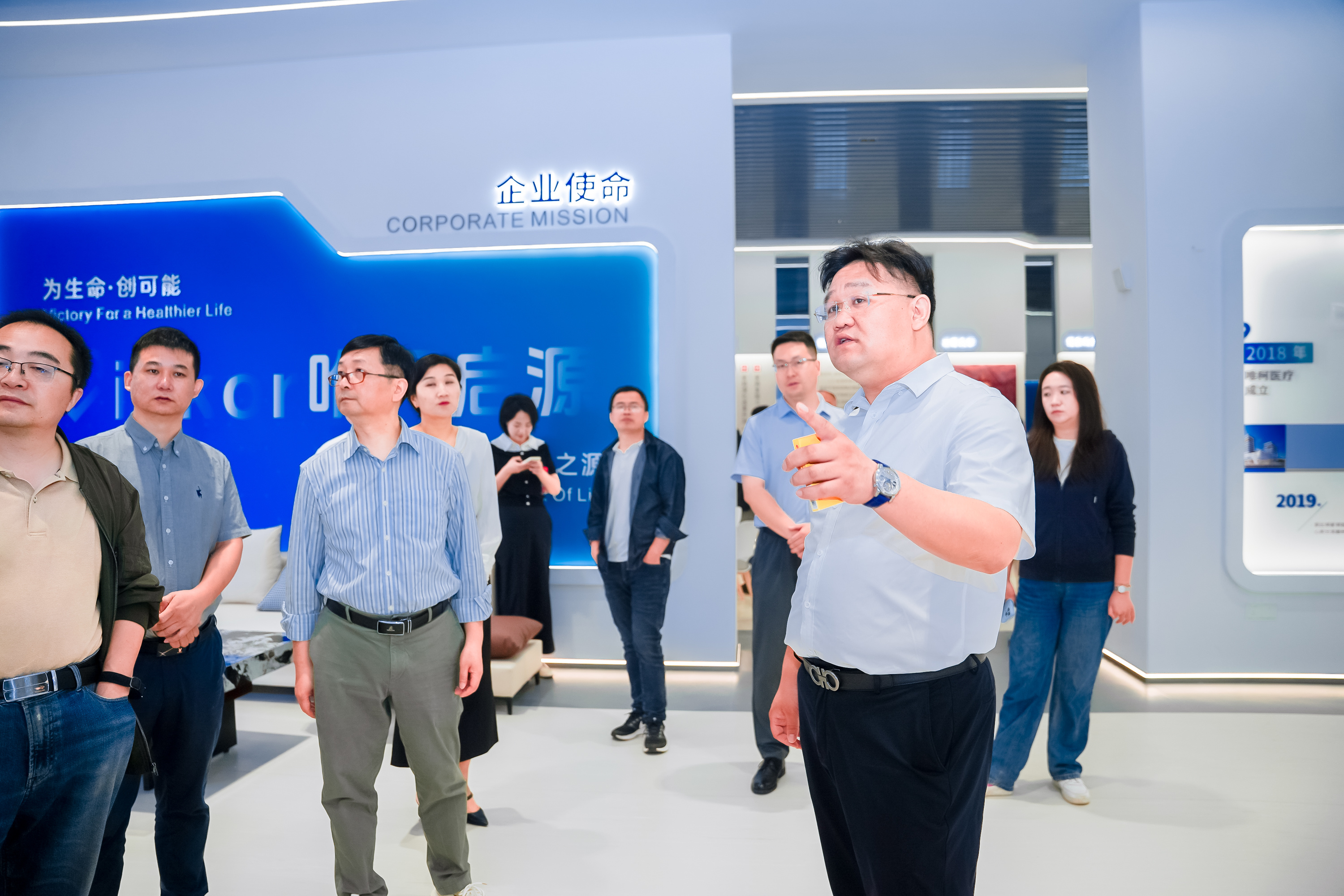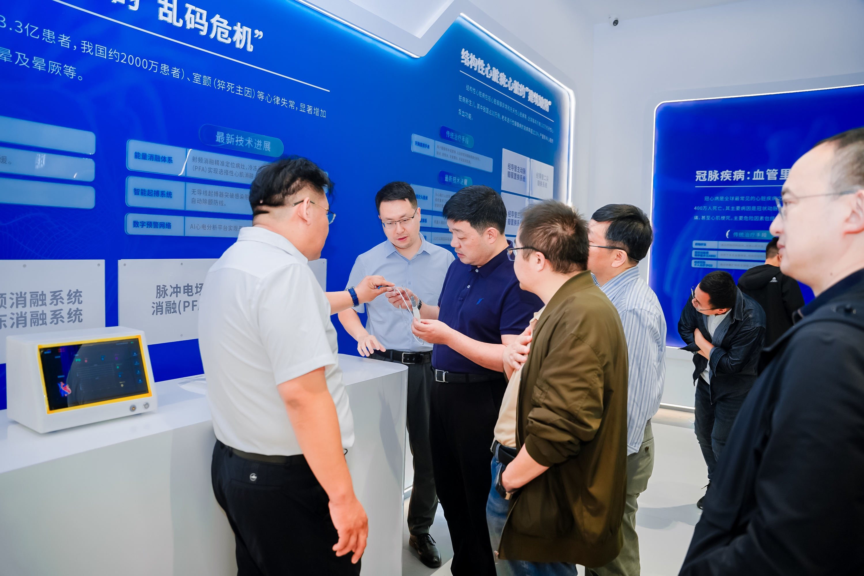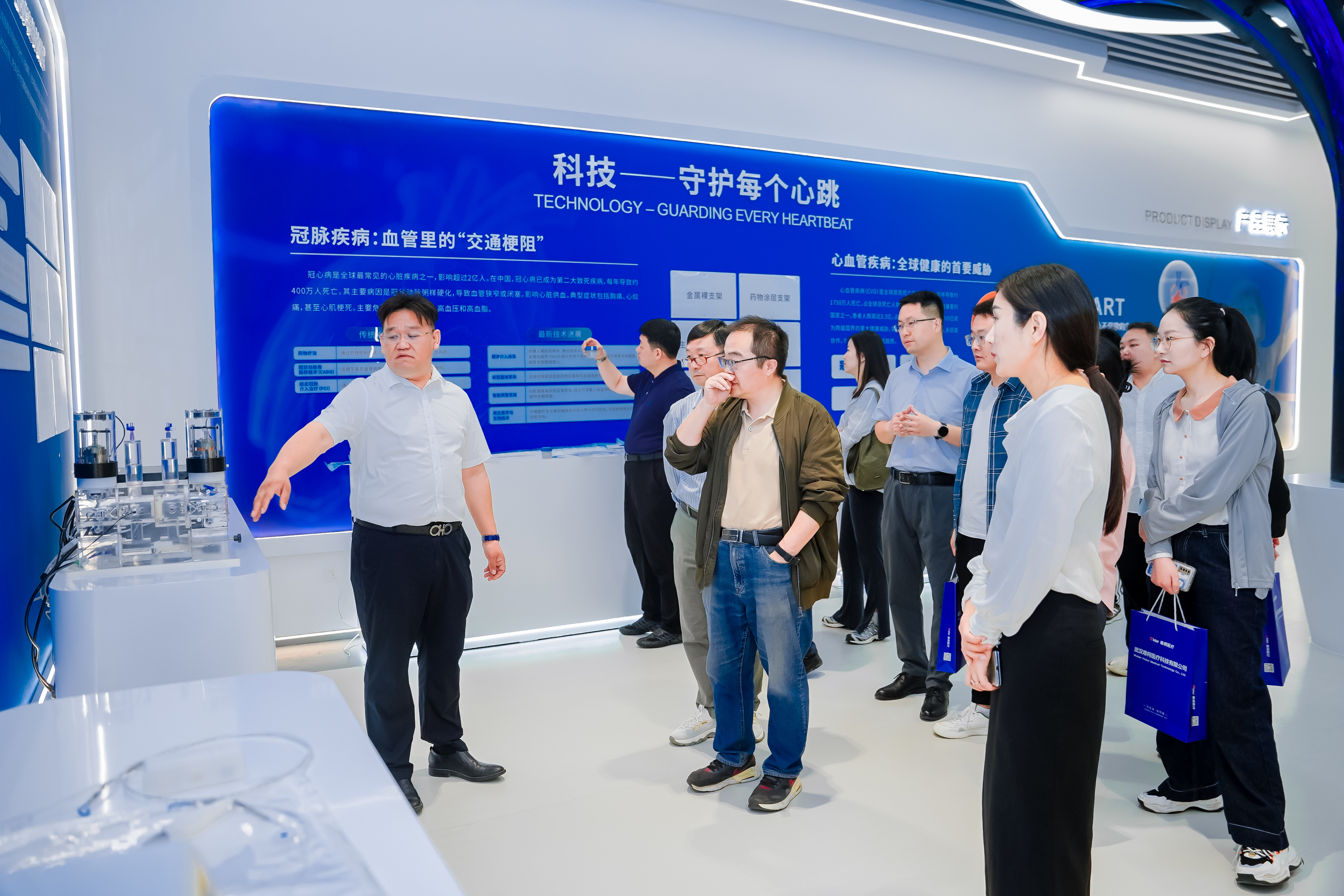 隨后,在陳松總經理及高管團隊的陪同下,嘉賓們實地參觀了企業高科技展廳與核心研發中心。現場展示的智能心衰監測系統及微型介入式心臟輔助泵等創新產品,生動呈現了唯柯醫療"監測-治療-康復"三位一體的全周期解決方案,其顯著的臨床價值與廣闊的產業化前景贏得了與會專家的一致贊譽。
